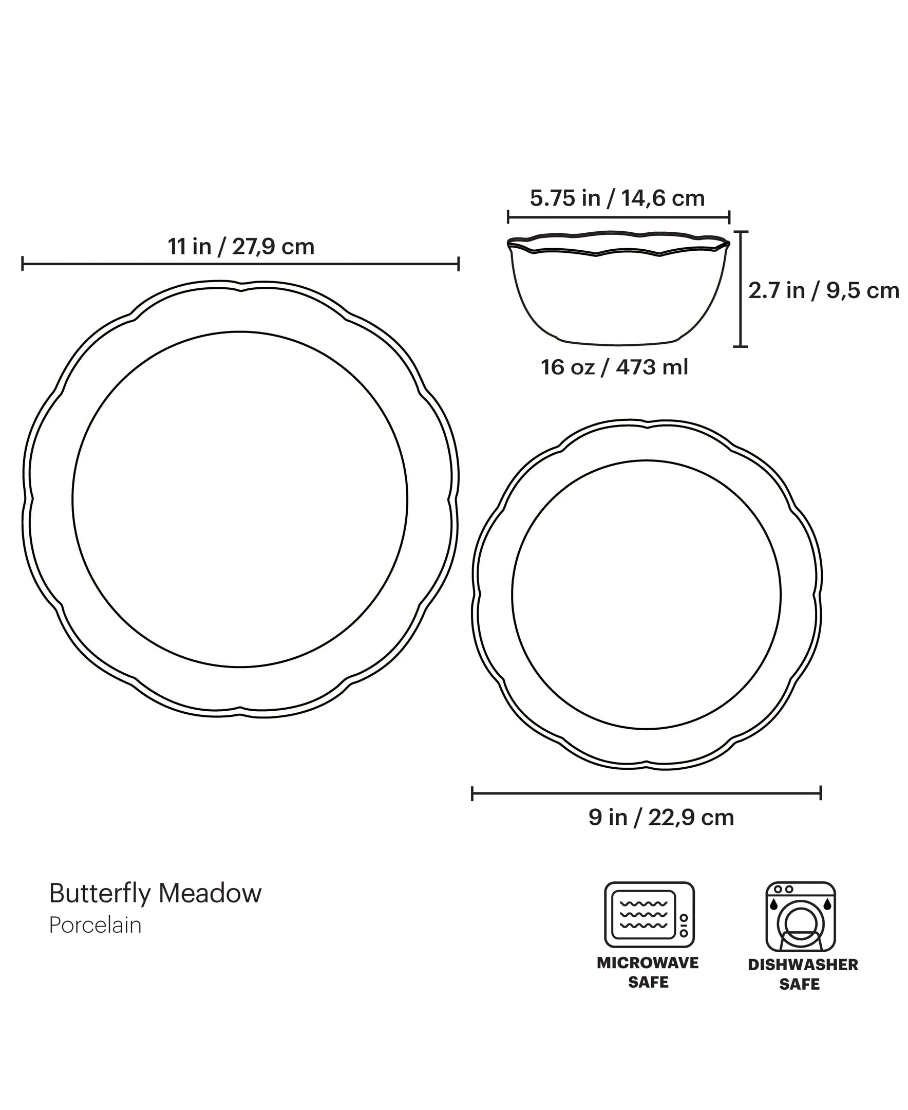 Part of the best-selling Butterfly Meadow collection, this beautiful pattern features gentle scalloped edges and delicately painted scenes of lush flowers for the holidays. This seasonal set is crafted of durable porcelain and is microwave and dishwasher-safe for added convenience.
