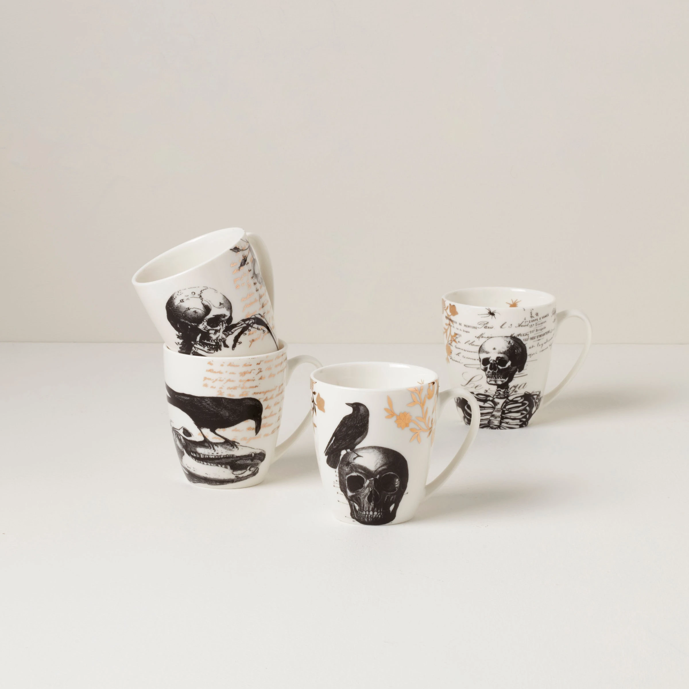 SKU: BGVUB 6959217410145 Categories: Cups & Mugs, Dinnerware, Eat Tags: 895678, Allow Expedite Ship, Allow Gift Message, Allow Gift Wrap Flag, Collection_desc:Halloween/Harvest, Color:White, Designer_description:Lenox, Dinnerware, Discount Eligible, Dishwasher Safe, Item_type:Mug (each or set), Lennox, Lenox, Material_desc:Porcelain, Mugs, New Arrival, Pattern_description:Vintage Halloween, Product_id:895678, Set of 4 mugs, Sub_theme_desc:Autumn/Halloween, Theme_description:Other Seasons, Vintage gold halloween mugs